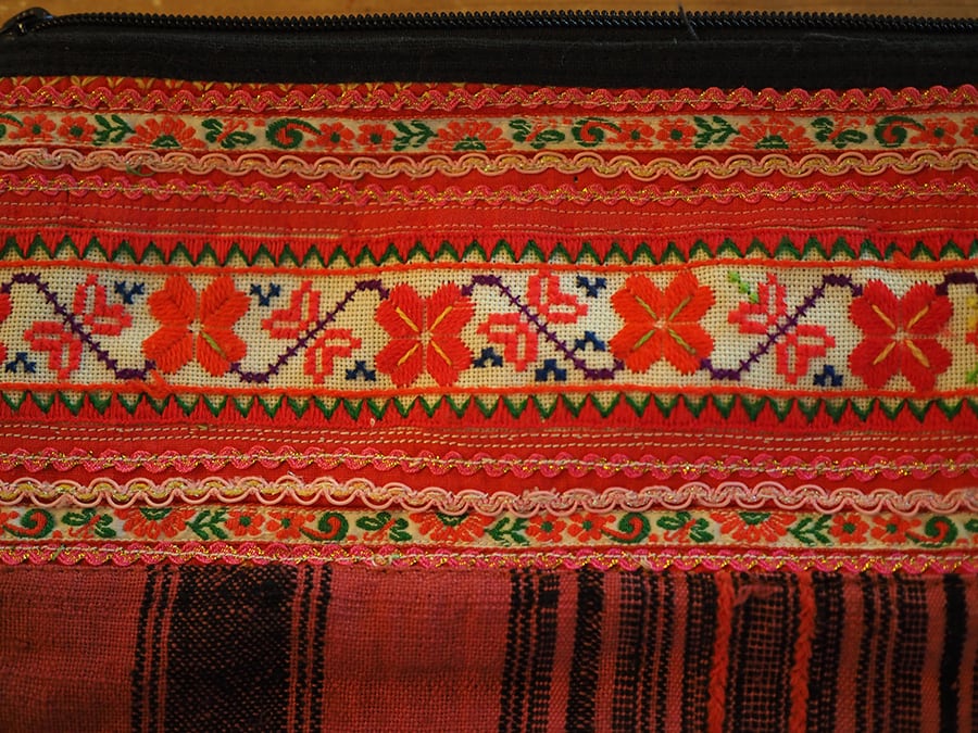 タイの山岳民族・モン族の衣装に使用されていた、刺繍を施したビンテージ生地をリメイクしたクラッチバッグです。