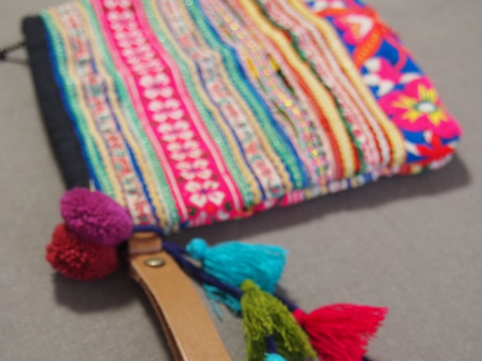 タイの山岳民族・モン族の衣装に使用されていたビンテージ生地をリメイクした、ミニクラッチバッグです。